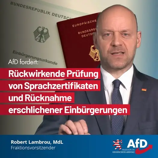 AfD fordert : rückwirkende Prüfung von Sprachzertifikaten und Rücknahme erschlichener Einbürgerungen